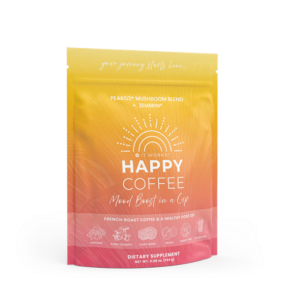 Happy Coffee is a functional beverage formulated to support your daily wellness routine with targeted ingredients designed to help you stay balanced, focused, and energized.* Each scoop provides 75 mg of naturally derived caffeine - about the amount in a standard cup of tea—paired with complementary ingredients that help promote a smooth, steady energy experience.*