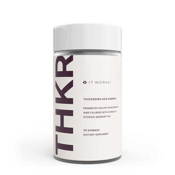 It Works THKR Hair Gummies are a convenient and delicious way to support healhty hair and natural hair growth cycles.  Featuring clinically studied AnaGain NU and other carefully selected ingredients, these vegan gummies help support hair density, fullness, and overall hair vitality as part of a balanced lifestyle. With consistent use, they support healthy - looking fuller hair.