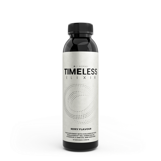 TIMELESS provides a balanced blend of collagen peptides, vitamins and plant extracts in an easy-to-mix liquid supplement. Vitamin C supports collagen formation, while niacin helps maintain healthy skin and supports energy metabolism1,2,3. Vitamin D plays a role in the process of cell division4. Simply add to water or your favourite drink to make TIMELESS part of your everyday routine. Suitable for adults seeking a simple addition to their beauty and wellness regimen. Consistency is Key – Stay consistent and let IT WORKS! TIMELESS work its wonders from the inside out.