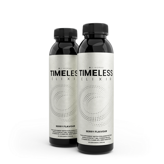 TIMELESS provides a balanced blend of collagen peptides, vitamins and plant extracts in an easy-to-mix liquid supplement. Vitamin C supports collagen formation, while niacin helps maintain healthy skin and supports energy metabolism1,2,3. Vitamin D plays a role in the process of cell division4. Simply add to water or your favourite drink to make TIMELESS part of your everyday routine. Suitable for adults seeking a simple addition to their beauty and wellness regimen. Consistency is Key – Stay consistent and let IT WORKS! TIMELESS work its wonders from the inside out.