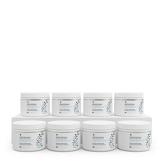 Other fiber products on the market generally contain only one or two types of dietary fiber. ZinoBiotic+ contains significant amounts of eight dietary fibers; resistant starch, inulin, beta-glucans from oats, fructo-oligosaccharides (FOS) and psyllium husks. These fibers resistant starch, inulin, beta glucans from oats, fructo-oligosaccharides (FOS) and psyllium husk are fermented in the colon and promote several bowel functions, for example, oat grain fiber contributes to normal bowel function4.